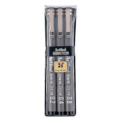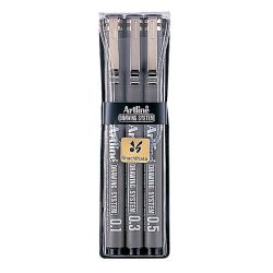 "Estuche con 4 estilógrafos ( 0.03,0.05,0.1 mm y punta pincel), negro"