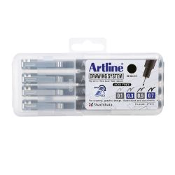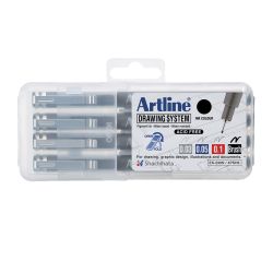 "Estuche con 4 estilógrafos ( 0.2, 0.4, 0.6 y 0.8 mm ), negro"