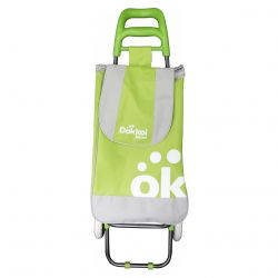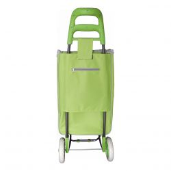 Complementa tu equipo para hacer compras y adquiere el carrito de compras que ponemos a tu alcance. Podrás llevarlo a cualquier lugar pues sus ruedas te permitirán trasladarlo a cualquier lado sin mucho esfuerzo. El mango ergonómico te permitirá sostenerlo con firmeza. Material: plástico, fierro y poliéster. Color: verde con gris. Medidas: 94 cm alto x 33cm largo x 17 cm ancho.