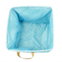Mantén tus cosas organizadas y tu ropa sucia en su lugar con este increíble cesto plegable para lavandería, guarda todo gracias a su gran espacio interior. Además, con su material impermeable en el interior asegurarás que tu ropa mojada o húmeda permanezca intacta sin dejar derrames y con su estructura metálica interna podrás asegurar que el cesto no perderá su forma. Medidas:37x37x24cm. Color: Azul. Material: Poliestireno, algodón, acero y piel sintético.