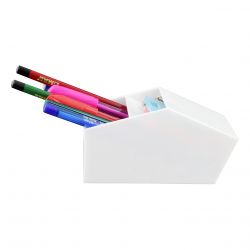 Organizador plástico multiusos, Ideal para colocarlo en tus escritorios, te ayudará a almacenar tus artículos de oficinas y mantener el orden en tus áreas de trabajo. En color: blanco. Material: plástico. Medidas: 13.8 cm largo x 17.3 cm ancho x 7 cm alto.